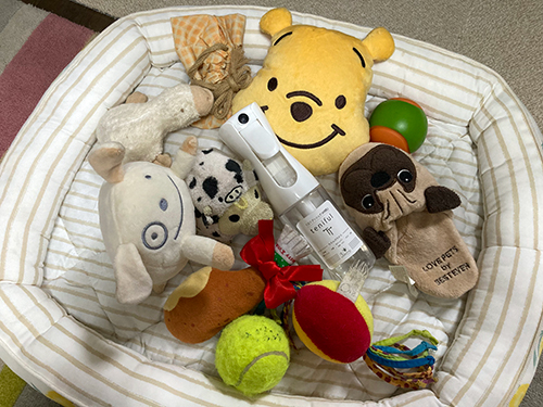 テニフルTTをシュッとひと吹きすると、表面がコーティングされ、24時間ウイルスや菌、ニオイをシャットアウトします。
